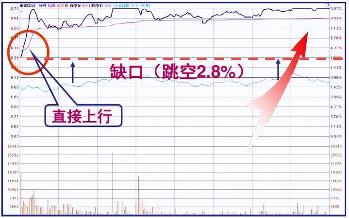 如果跳空开盘后没有任何回补动作,那么全天的股价走势必然会沿着跳空的方向运行。